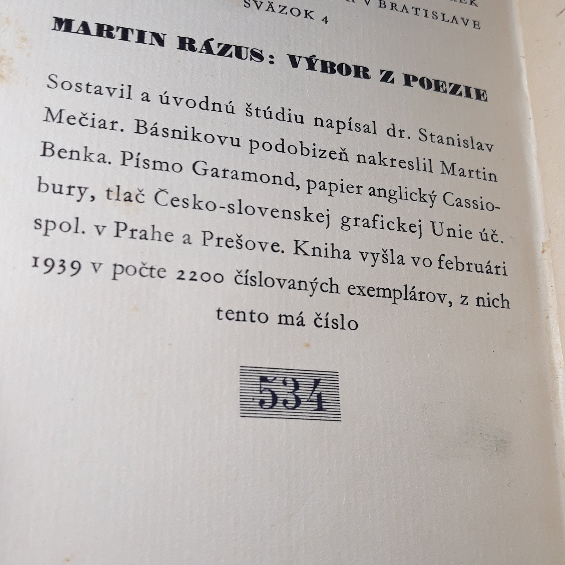 Počet výtlačkov: 2200 číslovaných exemplárov , z nich má tento číslo 534